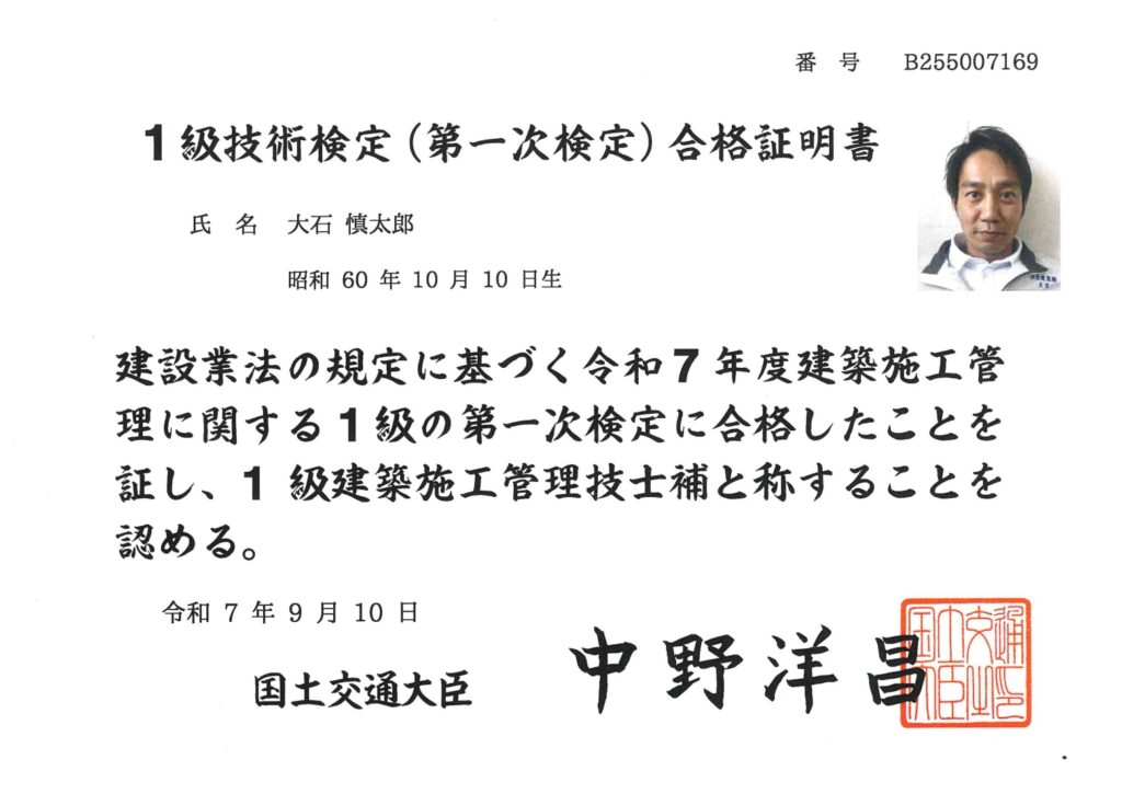 今年は多忙の為、一次検定のみ受験で技士補の称号を頂きました。